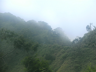 Vor bei an riesigen Bananenstauden und Kohlfeldern die mit Bayer in Schuss gehalten werden und immer wieder freundliche Gesichter. Gut manchmal ist auch ein grimmiges Gesicht dabei. Aber hier ist das Verhältnis bestimmt genau umgekehrt wie bei uns in Deutschland. Dort sieht man mehr grimmige Gesichter, vor allem wenn man bei Regen durch die Fußgängerzone geht. Ich hab es schon getestet und bin flötent durch Siegburg ohne Schirm und Jacke offen. Man wird von den überwiegend beschirmten Leuten dumm angeschaut. Zurück in den Regenwald....